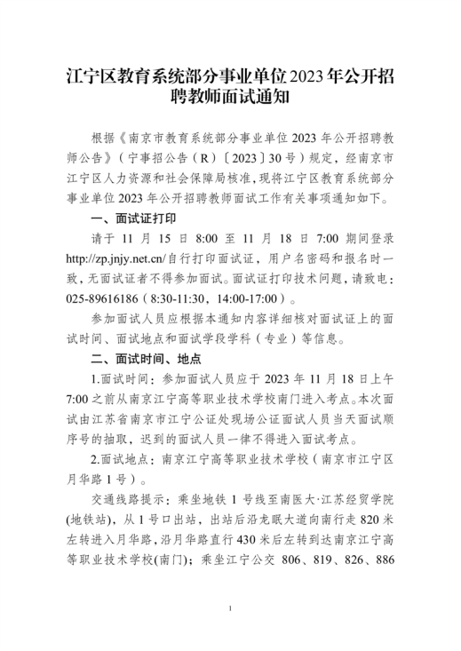 2023年南京江寧區(qū)教育系統(tǒng)部分事業(yè)單位公開招聘教師面試通知