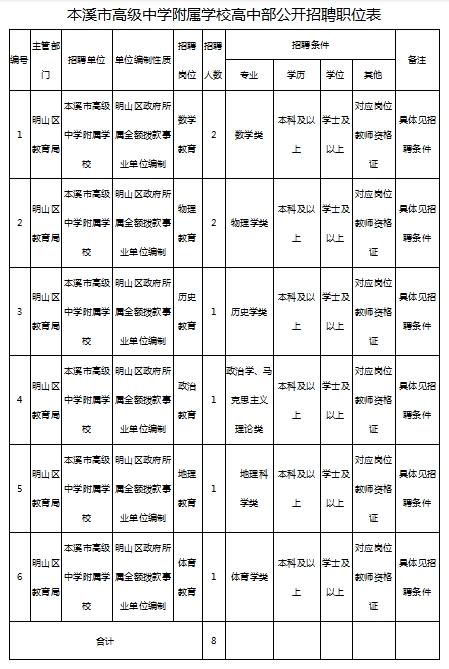 凡經(jīng)此次公開招聘進入本溪市高級中學(xué)附屬學(xué)校的教師須與用人單位簽訂6年服務(wù)期合同,服務(wù)期滿后方可流動。