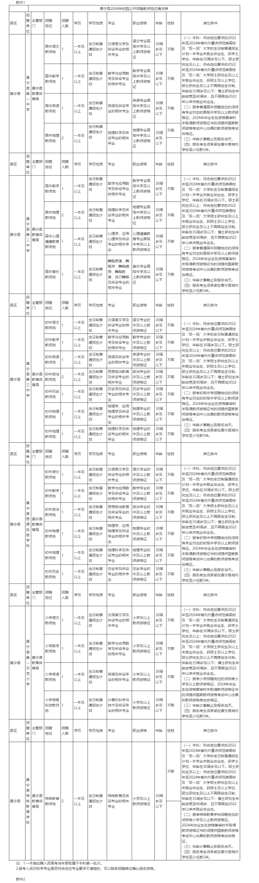 1.昌寧縣2024年校園公開招聘教師崗位情況表