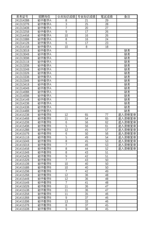 2024年江蘇華東師范大學(xué)第二附屬中學(xué)常熟實(shí)驗(yàn)學(xué)校(籌)公開招聘教師筆試成績(jī)公告