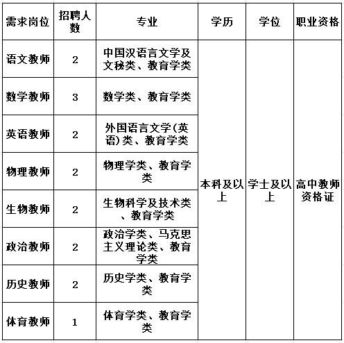 (3)學歷要求:普通高校應屆畢業(yè)生,具有本科(含)以上學歷。具有高中教師資格證