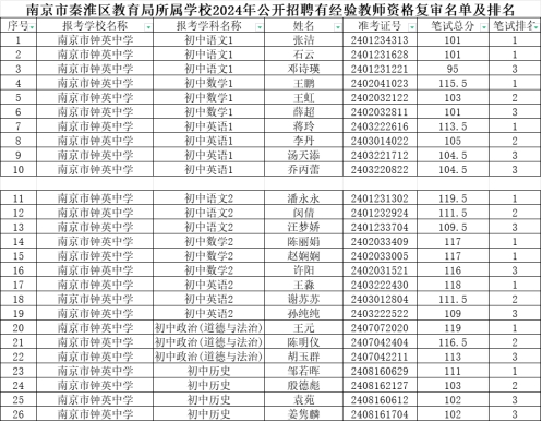詳見(jiàn)《2024年公開招聘有經(jīng)驗(yàn)教師資格復(fù)審名單及排名》。