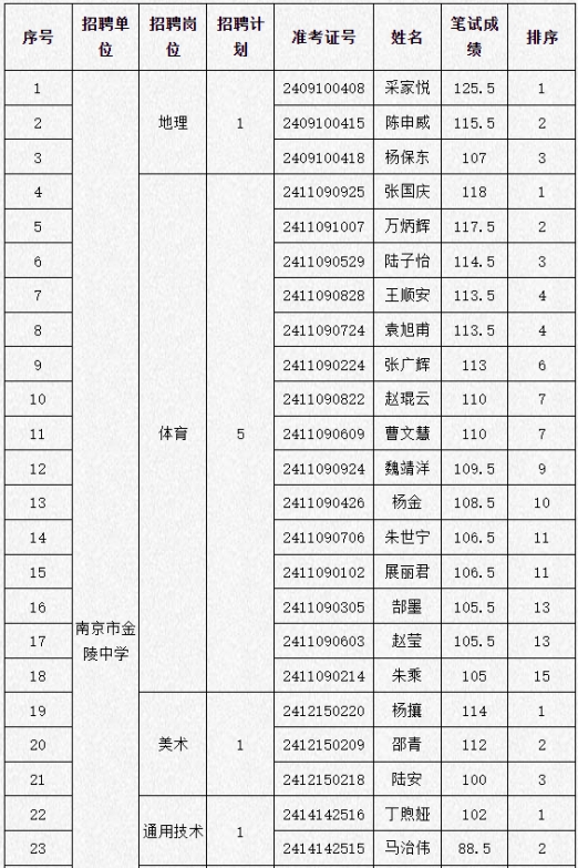 附件:南京市教育局直屬學(xué)校2024年公開(kāi)招聘教師進(jìn)入資格復(fù)審考生名單