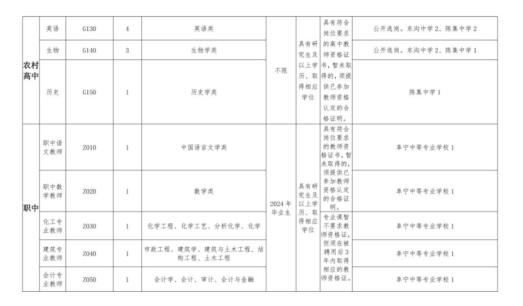1.2024年春阜寧縣教育局校園招聘崗位計劃表(本科及以上)