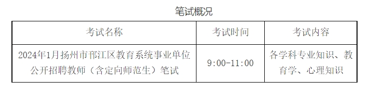 2024年1月?lián)P州市邗江區(qū)教育系統(tǒng)事業(yè)單位公開招聘教師(含定向師范生)筆試將于3月2日(周六)舉行,請考生盡早登錄原報名網(wǎng)站打印準考證,仔細查看考試時間、考試地點、考場號及座位號。以下相關(guān)注意事項,請關(guān)注!