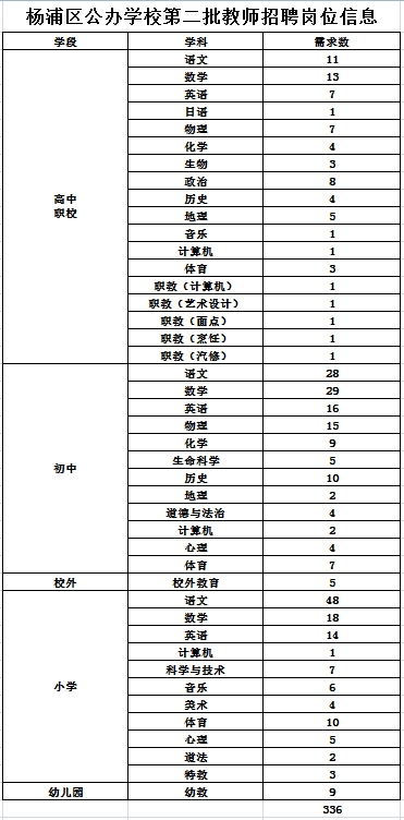 楊浦區(qū)公辦學(xué)校第二批教師招聘崗位信息