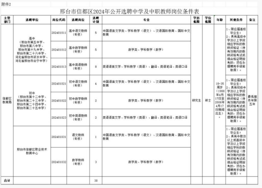2.《邢臺市信都區(qū)2024年公開選聘中學(xué)及中職教師崗位條件表》
