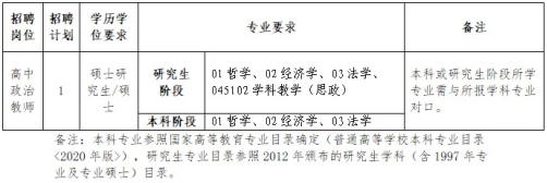 本次計(jì)劃招聘事業(yè)編制教師1人,崗位為高中政治教師。具體如下: