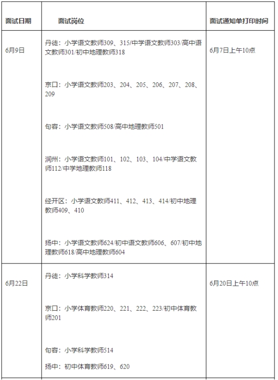 2024年揚(yáng)中市、句容市、京口區(qū)、潤州區(qū)、丹徒區(qū)、鎮(zhèn)江經(jīng)開區(qū)六個轄市區(qū)教育系統(tǒng)公開招聘教師和校醫(yī)集中面試將于2024年6月9日-7月6日分期分批舉行。為方便考生復(fù)習(xí)迎考,現(xiàn)就面試有關(guān)事項通告如下: