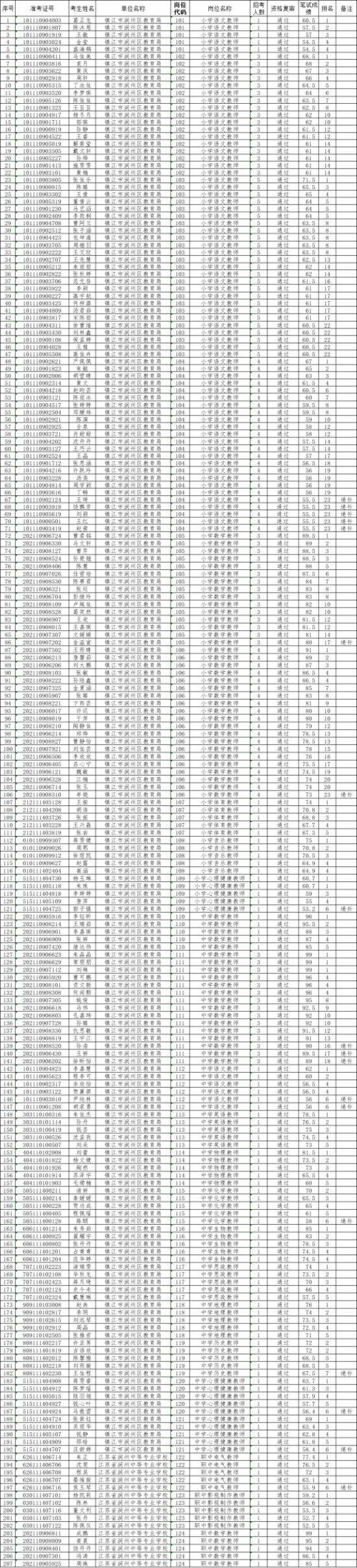 根據(jù)《2024年鎮(zhèn)江市潤州區(qū)教育系統(tǒng)公開招聘教師公告》(鎮(zhèn)潤人社事招公告〔2024〕02號)要求,以下考生通過了資格復(fù)審,現(xiàn)予以公示。請考生在鎮(zhèn)江市人事考試考工服務(wù)平臺“事業(yè)單位考試專欄”查詢閱讀《2024年揚(yáng)中市、句容市、京口區(qū)、潤州區(qū)、丹徒區(qū)、鎮(zhèn)江經(jīng)開區(qū)公開招聘教師和校醫(yī)集中面試通告》,查看本人報(bào)考職位面試日期安排和面試通知單打印開始時間。咨詢電話:0511-85589160。