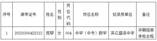 根據(jù)《2023年蘇州市吳江區(qū)教育系統(tǒng)公開招聘教師公告》,經(jīng)過考試、體檢、考核(政審)等程序,以下擬聘用人員予以公示。