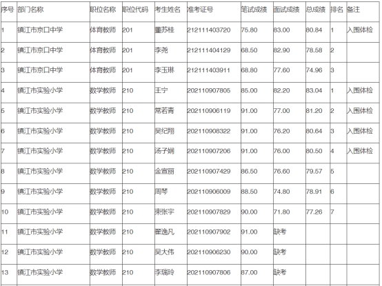 現(xiàn)將鎮(zhèn)江市京口區(qū)2024年集中公開(kāi)招聘教師筆試成績(jī)、面試成績(jī)和總成績(jī)及入圍體檢人員名單予以公示,公示時(shí)間為2024年6月25日至6月27日。如有異議請(qǐng)與京口區(qū)教育局組織人事科(0511-89980530)聯(lián)系。監(jiān)督電話:京口區(qū)人社局人力資源管理科(0511-80859057)。