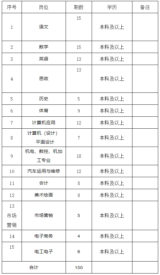 3.文化課教師(語文、數學、英語、政治、體育、美術)具有高中/中職及以上教師資格;專業(yè)課教師具有相關職業(yè)(執(zhí)業(yè))資格證者優(yōu)先。