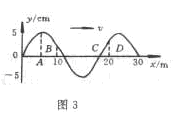 解:(1)振幅是質(zhì)點(diǎn)偏離平衡位置的最大位移,波長(zhǎng)是兩個(gè)相鄰的峰峰或谷谷之間的距離,所以振幅A=5cm,波長(zhǎng)=20m。