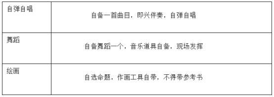 才藝展示:以下項(xiàng)目自選一項(xiàng),時(shí)間3分鐘以內(nèi)。(分值20分)