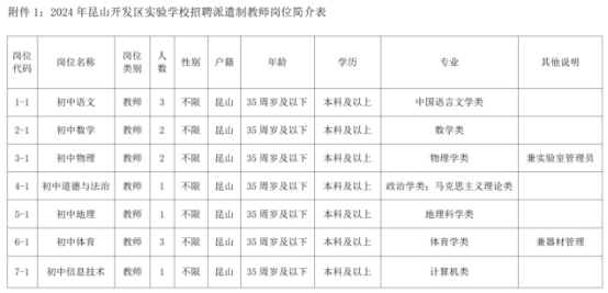 詳見《2024年昆山開發(fā)區(qū)實(shí)驗(yàn)學(xué)校招聘派遣制教師崗位簡介表》。