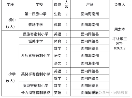2.初中生物、初中體育、小學(xué)語文面向海南州戶籍,小學(xué)體育、小學(xué)英語、小學(xué)數(shù)學(xué)面向同德縣戶籍;