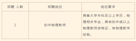 為滿足學(xué)校發(fā)展和教學(xué)工作需要,本學(xué)期新增招聘初中物理教師1名,具體崗位需求和要求如下: