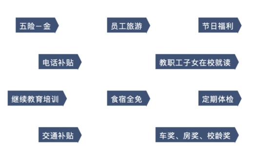 2、學校提供當地最具競爭力的薪酬待遇,應屆畢業(yè)生年綜合收入在20萬-35萬區(qū)間內,工資標準、福利待遇均顯著優(yōu)于同類學校;