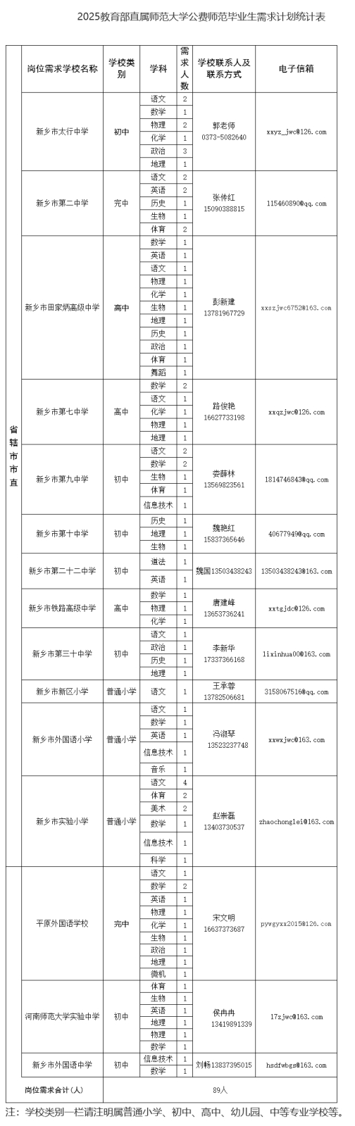 招聘對象為北京師范大學(xué)、華東師范大學(xué)、東北師范大學(xué)、華中師范大學(xué)、陜西師范大學(xué)、西南大學(xué)6所教育部直屬的師范大學(xué)河南籍2025屆公費(fèi)師范畢業(yè)生,以及符合國家有關(guān)跨省(市、區(qū))要求、經(jīng)培養(yǎng)學(xué)校和生源省教育行政部門審核同意的外。ㄊ校┘2025屆公費(fèi)師范畢業(yè)生。具體崗位需求詳見附件。