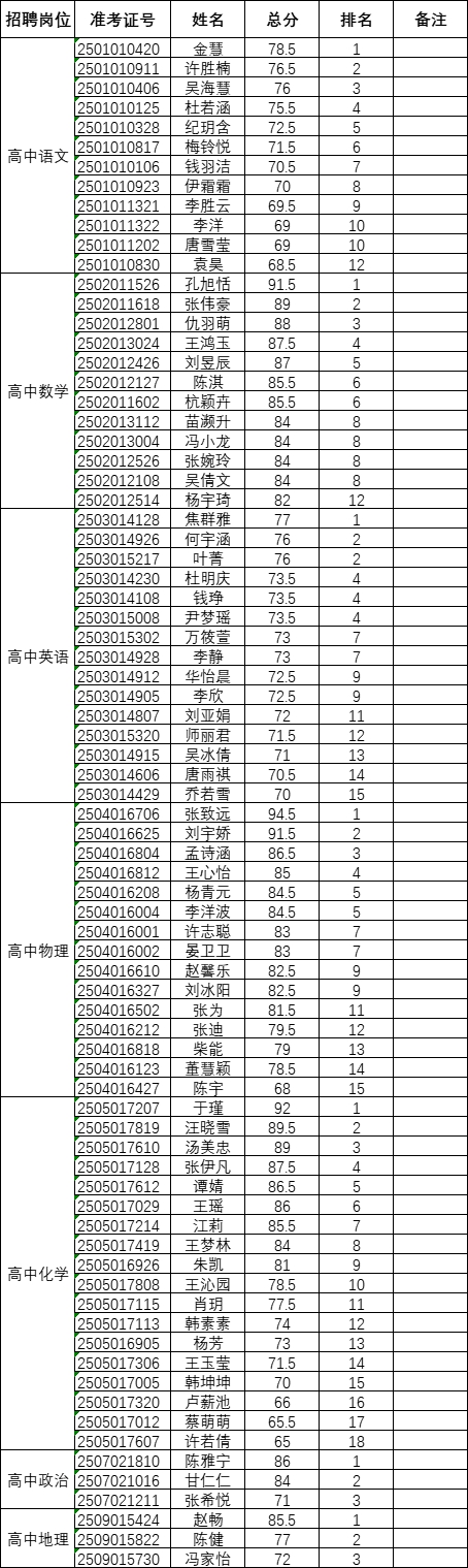 五、南京市第一中學(xué)2024年公開招聘教師資格復(fù)審考生名單