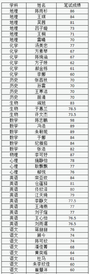 根據(jù)《南京市鼓樓區(qū)教育局所屬學校2024年11月公開招聘教師公告》(精神,經(jīng)報名和筆試,根據(jù)招聘崗位數(shù)的1:3,按筆試成績由高到低,現(xiàn)將資格復審名單和相關工作公布如下:
