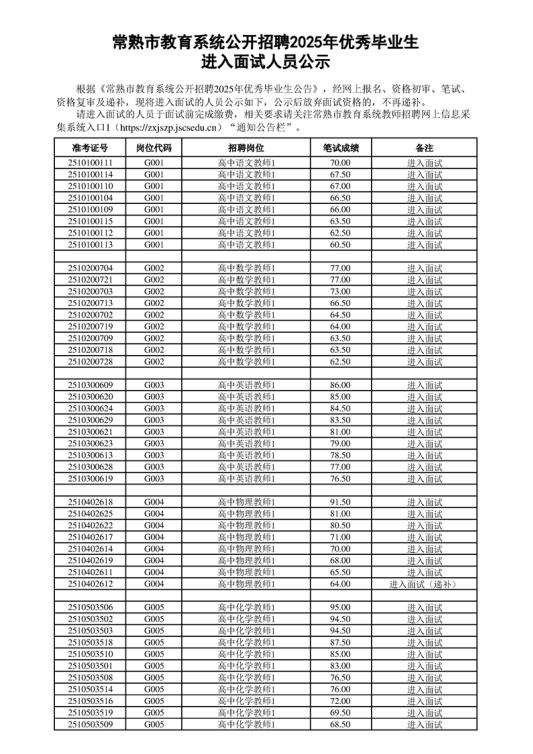 2025年蘇州常熟市教育系統(tǒng)公開招聘優(yōu)秀畢業(yè)生進(jìn)入面試人員公示