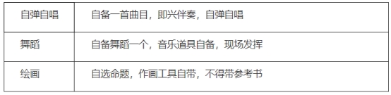 才藝展示:以下項(xiàng)目自選一項(xiàng),時(shí)間3分鐘以內(nèi)。(分值20分)