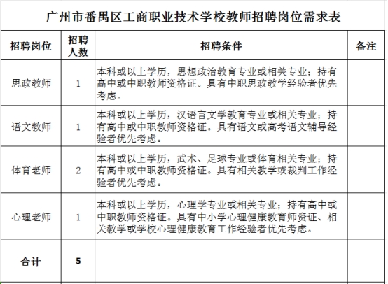 (1)《廣州市番禺區(qū)工商職業(yè)技術(shù)學(xué)校校編教師報名表》一份(見附件)。