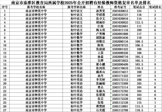 詳見《南京市秦淮區(qū)教育局所屬學(xué)校2025年公開招聘有經(jīng)驗教師資格復(fù)審名單及排名》