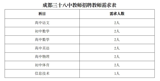 隨著學(xué)校辦學(xué)品質(zhì)提升和辦學(xué)規(guī)模的擴(kuò)大,因?qū)W校工作需要,我們竭誠(chéng)歡迎立志于教育事業(yè)的優(yōu)秀教師加盟成都三十八中。
