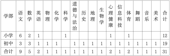 備注:應(yīng)聘信息科技、舞蹈、音樂、美術(shù)學(xué)科崗位的,專業(yè)技能應(yīng)較為突出;應(yīng)聘體育學(xué)科崗位的,專項(xiàng)能力原則上應(yīng)達(dá)到二級(jí)運(yùn)動(dòng)員以上水平。