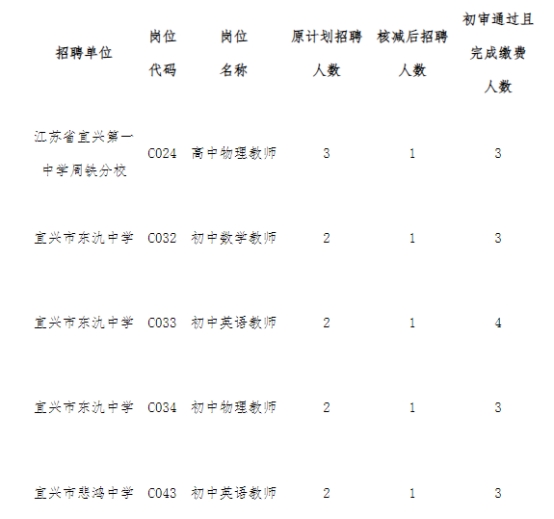 2025年江蘇省宜興市教育系統(tǒng)公開(kāi)招聘優(yōu)秀人才報(bào)名工作已結(jié)束,經(jīng)審核,部分崗位最終報(bào)考人數(shù)少于該崗位招聘人數(shù)的3倍,未能達(dá)到開(kāi)考比例。按照《2025年江蘇省宜興市教育系統(tǒng)公開(kāi)招聘優(yōu)秀人才公告》(錫人社事招公告?zhèn)洹?025〕4號(hào))精神,需相應(yīng)取消、核減部分招聘崗位計(jì)劃,現(xiàn)將取消(核減)崗位公告如下: