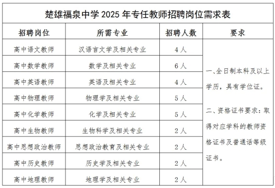 2.線上報(bào)名:即日起應(yīng)聘人員將《楚雄福泉中學(xué)教師招聘報(bào)名表》(附件)發(fā)送至郵箱:yncxfqzx@163.com,郵件標(biāo)題格式為:畢業(yè)學(xué)校+姓名+應(yīng)聘崗位。資格審查通過后由學(xué)校人事處電話通知參加面試。