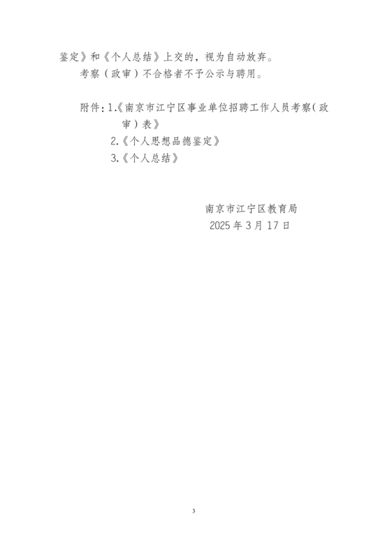2025年關(guān)于南京市江寧區(qū)公開招聘教師體檢與考察(政審)的通知