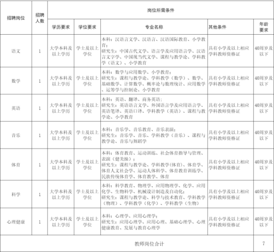 因?qū)W校自身發(fā)展需要,現(xiàn)面向社會(huì)公開招聘一批有一定專業(yè)素養(yǎng)、有積極進(jìn)取精神、綜合素質(zhì)良好的優(yōu)秀教師,具體如下。