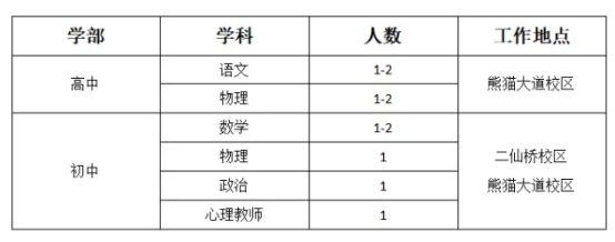現(xiàn)因?qū)W校發(fā)展需要,現(xiàn)特面向社會(huì)招聘少量優(yōu)秀在職教師和優(yōu)秀應(yīng)屆畢業(yè)生。對(duì)認(rèn)同嘉祥教育理念的優(yōu)秀在職教師和應(yīng)屆畢業(yè)生,我們始終熱忱歡迎您加盟成華嘉祥,一起逐夢(mèng)未來!