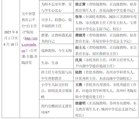 第一階段線上自主研學(xué),自主觀看吳中區(qū)智慧教育云平臺“圣陶講堂”11節(jié)視頻課(詳見附件1)。觀看網(wǎng)址:吳中智慧教育云平臺“自主學(xué)習(xí)”版塊(http://zzxx.szwzedu.cn/)-公開課-專題-圣陶講堂。