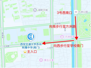1.報(bào)考高中(A101-A115)、初高中(B201-B203)、初中(C301-C315)崗位的,考點(diǎn)為:西安交通大學(xué)蘇州附屬中學(xué)方洲路校區(qū)(蘇州工業(yè)園區(qū)方洲路598號(hào))。為保障考點(diǎn)秩序,筆試當(dāng)天僅開放南門(方洲路598號(hào))供考生進(jìn)出,其他校門暫不開放。