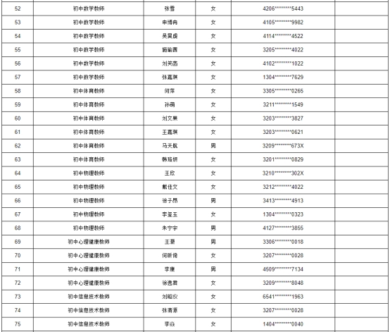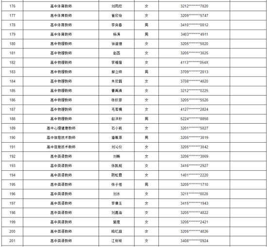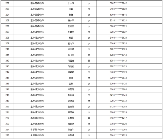根據(jù)《2025年蘇州高新區(qū)教育系統(tǒng)選聘優(yōu)秀畢業(yè)生公告》要求,經(jīng)過(guò)報(bào)名、資格初審、考試、資格復(fù)審,體檢和考察合格,擬錄用劉青等227名同志,現(xiàn)予以公示: