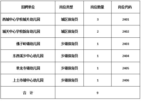 因保教工作需要,經(jīng)縣委編委同意,擬面向社會(huì)公開招聘幼兒園保育員9名,現(xiàn)將有關(guān)事項(xiàng)公告如下: