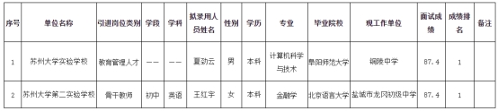 根據(jù)《2025年蘇州市相城區(qū)引進教育管理人才和骨干教師公告》,經(jīng)公開報名、考核、體檢、考察(政審)等程序,擬錄用以下2名同志為相城區(qū)事業(yè)編制教師,現(xiàn)予以公示,公示時間為2025年8月14日—8月22日。