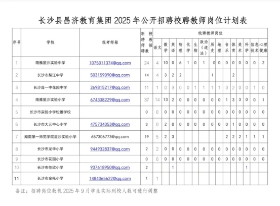 本次招聘崗位計劃及要求詳見附件1《長沙縣昌濟教育集團2025年公開招聘校聘教師崗位計劃表》
