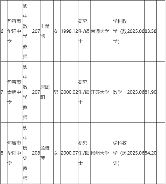 根據(jù)《句容市教育局所屬學(xué)校2025年第二批校園公開招聘教師公告》(鎮(zhèn)句事招公告〔2024〕9號(hào))經(jīng)資格審查、面試、體檢和考察,現(xiàn)將句容市教育局所屬學(xué)校2025年第二批校園招聘擬聘用人員名單予以公示,公示時(shí)間2025年8月25日-9月2日。