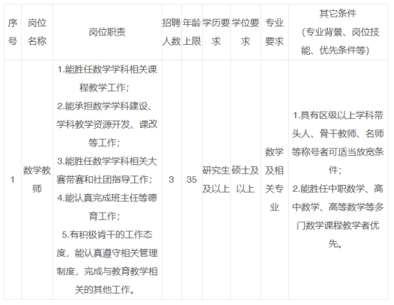 (三)具有區(qū)級以上學(xué)科帶頭人、骨干教師、名師等稱號、中級及以上專業(yè)技術(shù)職稱者或部分緊缺急需崗位可適當(dāng)放寬條件。