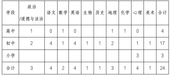 面向社會公開招聘中小學編外高中教師4名、初中教師17名、小學教師3名,共24名。