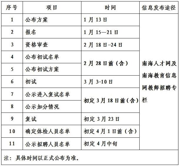 (一)公布方案:由區(qū)教師招聘工作領導小組統(tǒng)一在南海教育信息網(wǎng)及南海人才信息網(wǎng)教師招聘專欄上公布(以下簡稱“網(wǎng)站”)本招聘方案。
