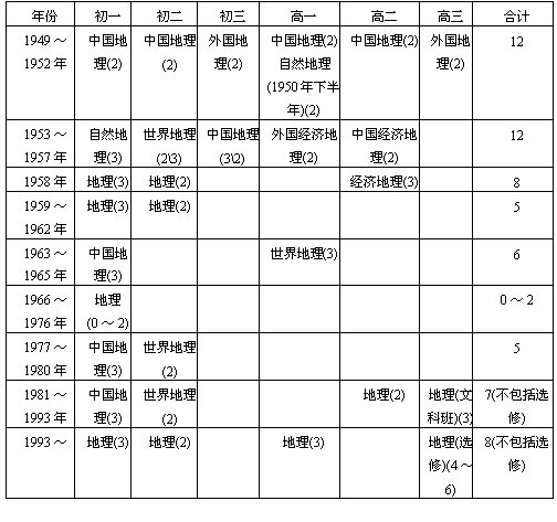 到恢復(fù),學(xué)時(shí)也由少到多,逐步得到增加。不僅在小學(xué),而且在高中一年級(或高中二年級),以及高中三年級的文科班也開設(shè)了地理課程。在教學(xué)內(nèi)容上,初中階段開設(shè)區(qū)域地理(包括中國地理、世界地理、鄉(xiāng)土地理),高中階段基本上講授系統(tǒng)地理。在指導(dǎo)思想上,逐步明確了以人地關(guān)系、可持續(xù)發(fā)展理論作為地理教學(xué)內(nèi)容的核心論題。在地理課本的編寫上,由以往“偏重提供事實(shí)材料”向“事實(shí)與原理相結(jié)合”方向轉(zhuǎn)變,區(qū)域地理內(nèi)容的組織由條述法向特征法轉(zhuǎn)變,課本的表述方法也由以往的文字表述為主向圖文并茂方向轉(zhuǎn)變。