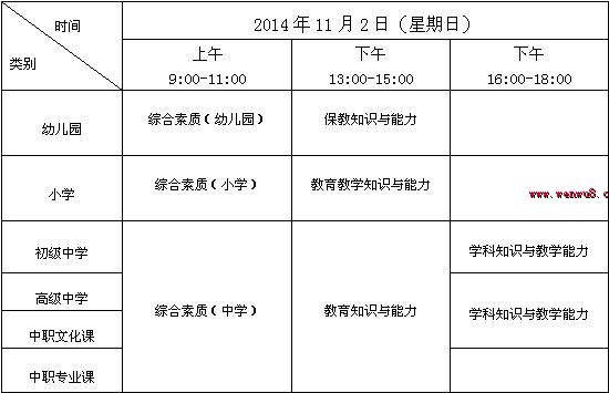 筆試考試時間為2014年11月2日,每科筆試時間為120分鐘。筆試全部采用紙筆考試方式。