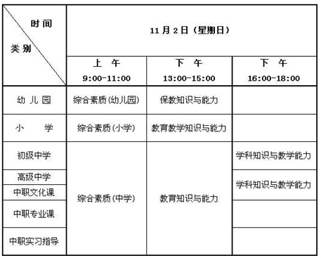 申請(qǐng)中職專業(yè)課及中職實(shí)習(xí)指導(dǎo)教師資格的人員參加高級(jí)中學(xué)教師的“綜合素質(zhì)”和“教育知識(shí)與能力”兩科筆試,“學(xué)科知識(shí)與教學(xué)能力”科目納入面試環(huán)節(jié)考查。